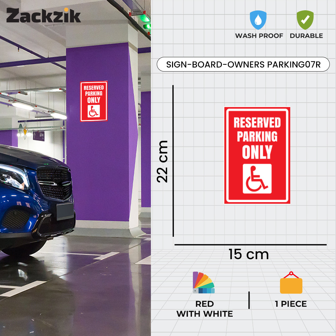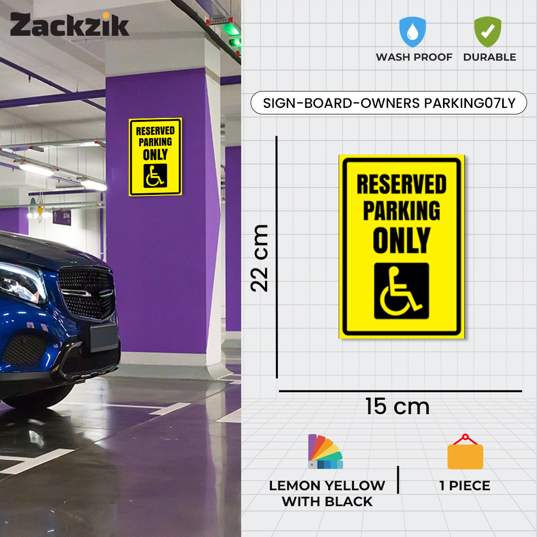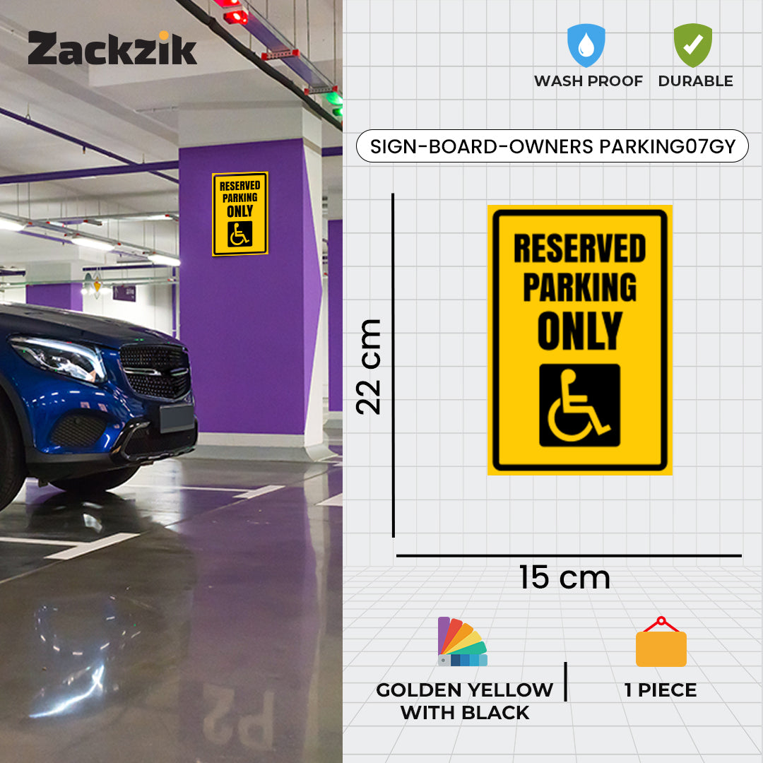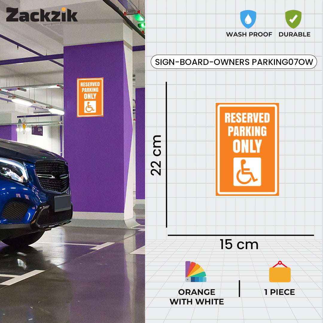 Owner’s Parking Signboard reserves parking spaces exclusively for owners. Made from durable foam board with a vinyl coating, it measures 15 × 22 cm and features bold, high-contrast lettering for easy visibility. Quick to install using strong double-sided cello tape, it’s ideal for gates, walls, and fences. Designed for indoor and outdoor use, it offers a reliable, weather-resistant solution to maintain organized parking.