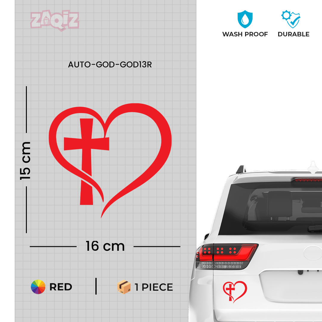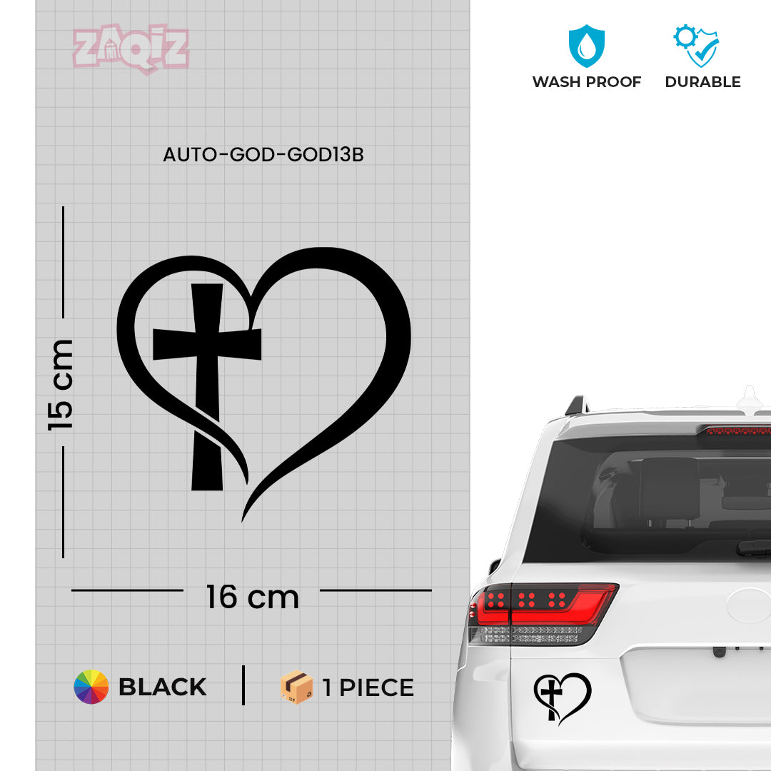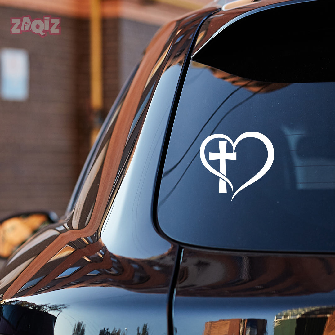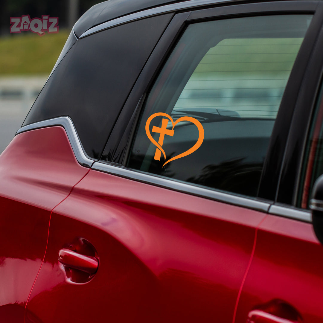 Christian Heart Cross Car Sticker – Jesus Faith Vinyl Decal for Cars & Bikes | Waterproof Religious Sticker