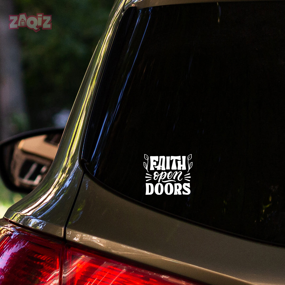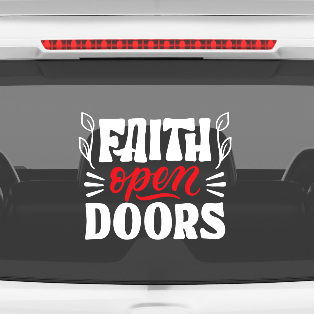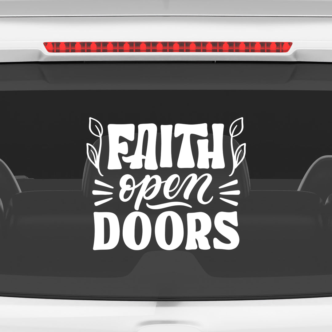 Faith Opens Doors Christian Vinyl Sticker – Inspirational Faith Quote Car Decal