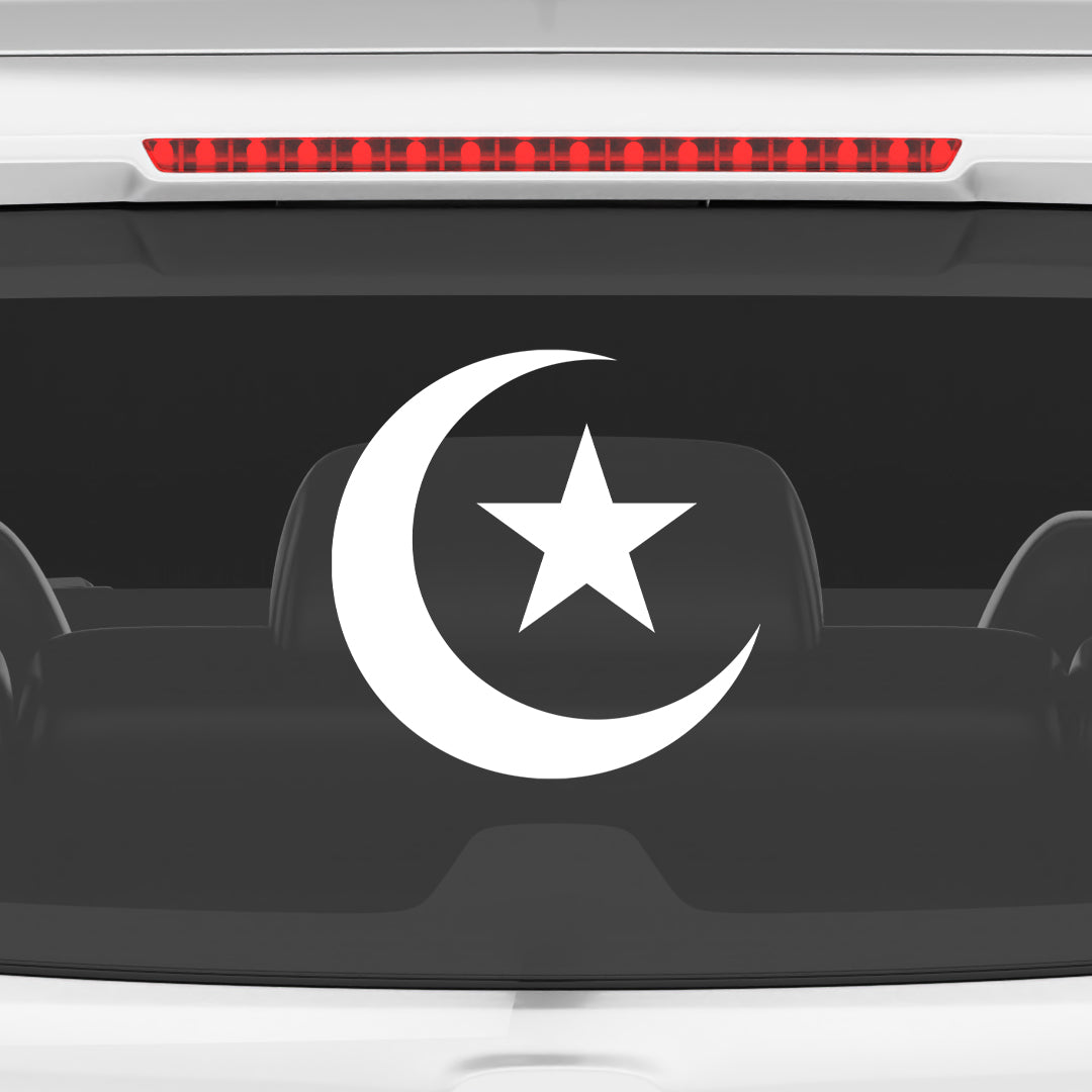 Express your faith with this elegant Islamic Mosque Car Sticker, featuring a clean silhouette of a mosque dome paired with the crescent moon and star — symbols of peace, guidance, and devotion. The crisp white vinyl design looks stunning on car rear glass, bikes, helmets, laptops, home doors, and shop windows.