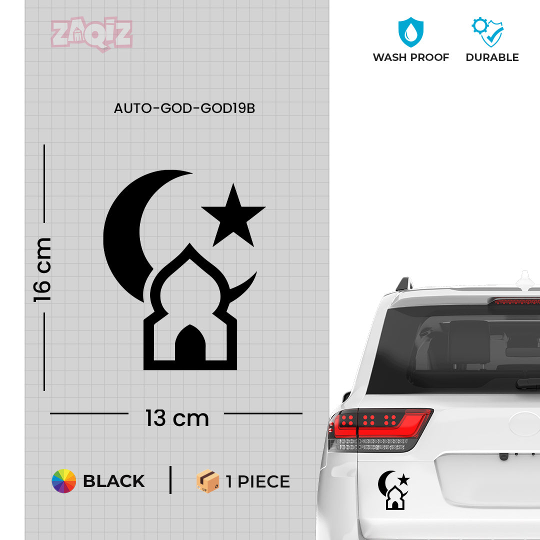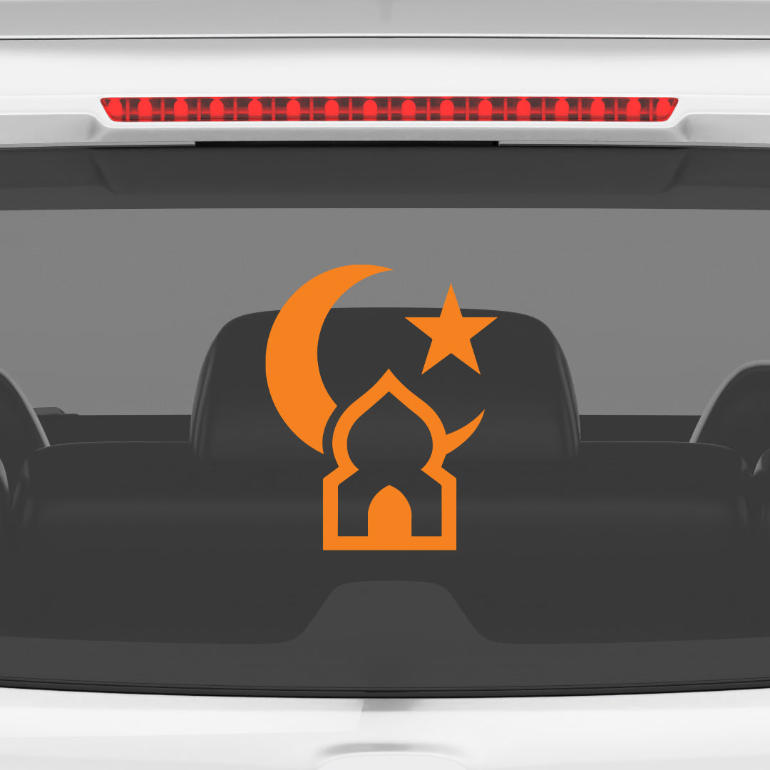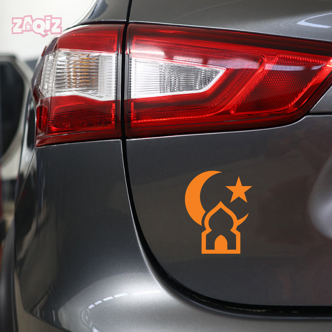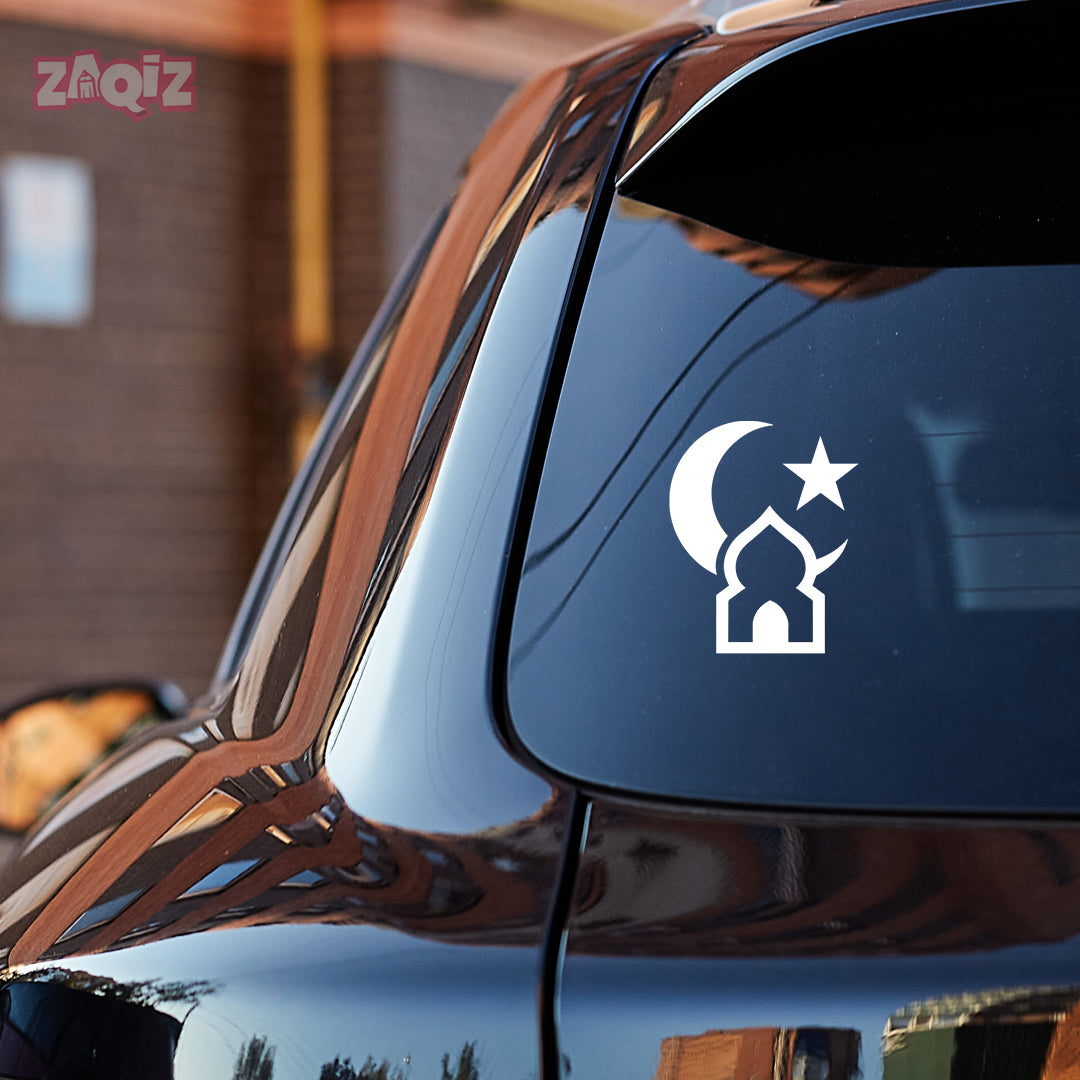 Islamic Mosque Car Sticker – Crescent Moon & Star Vinyl Decal for Cars & Bikes | Waterproof Muslim Faith Sticker