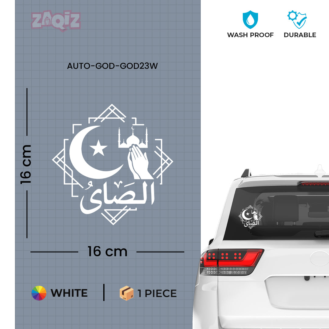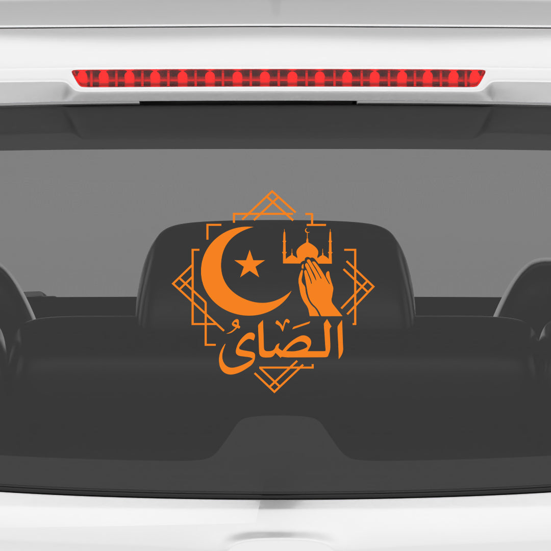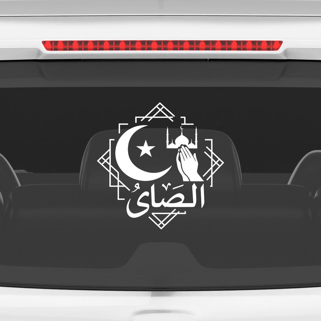 Islamic Prayer Car Sticker – Crescent Moon, Mosque & Arabic Calligraphy Vinyl Decal | Waterproof Muslim Faith Sticker