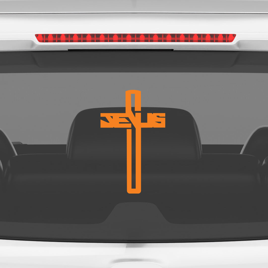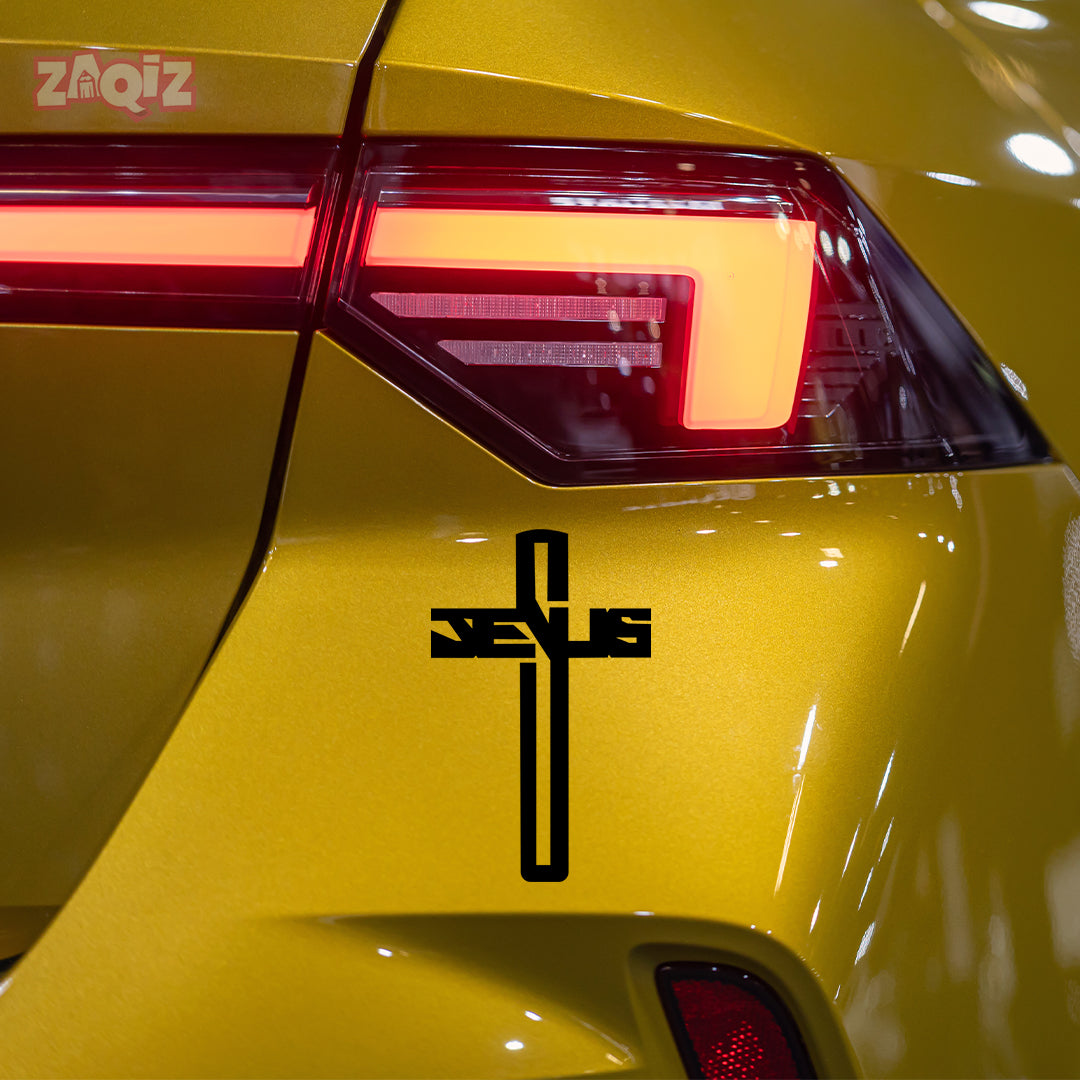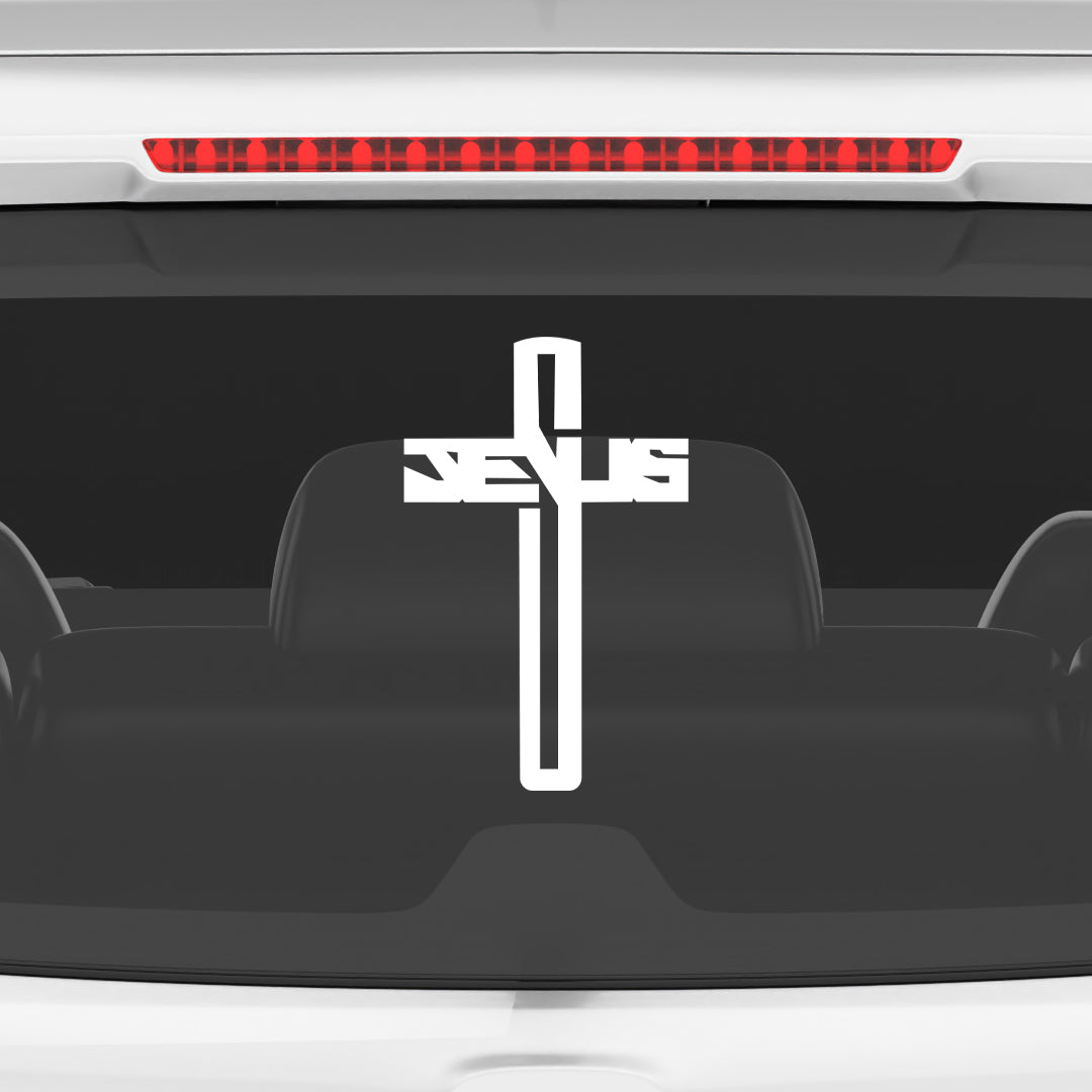 Jesus Cross Car Sticker – Modern Jesus Text Cross Vinyl Decal for Cars & Bikes | Waterproof Christian Faith Sticker