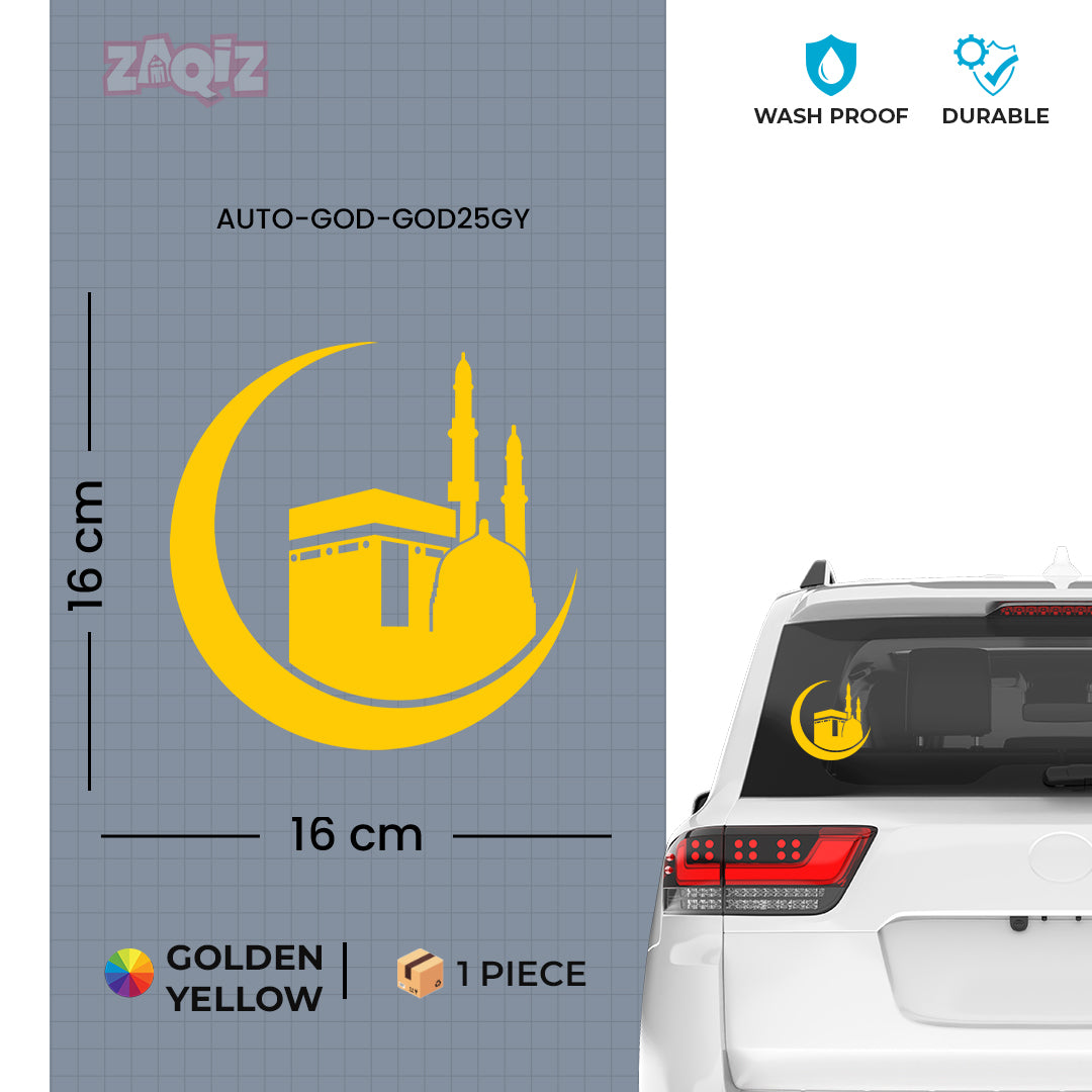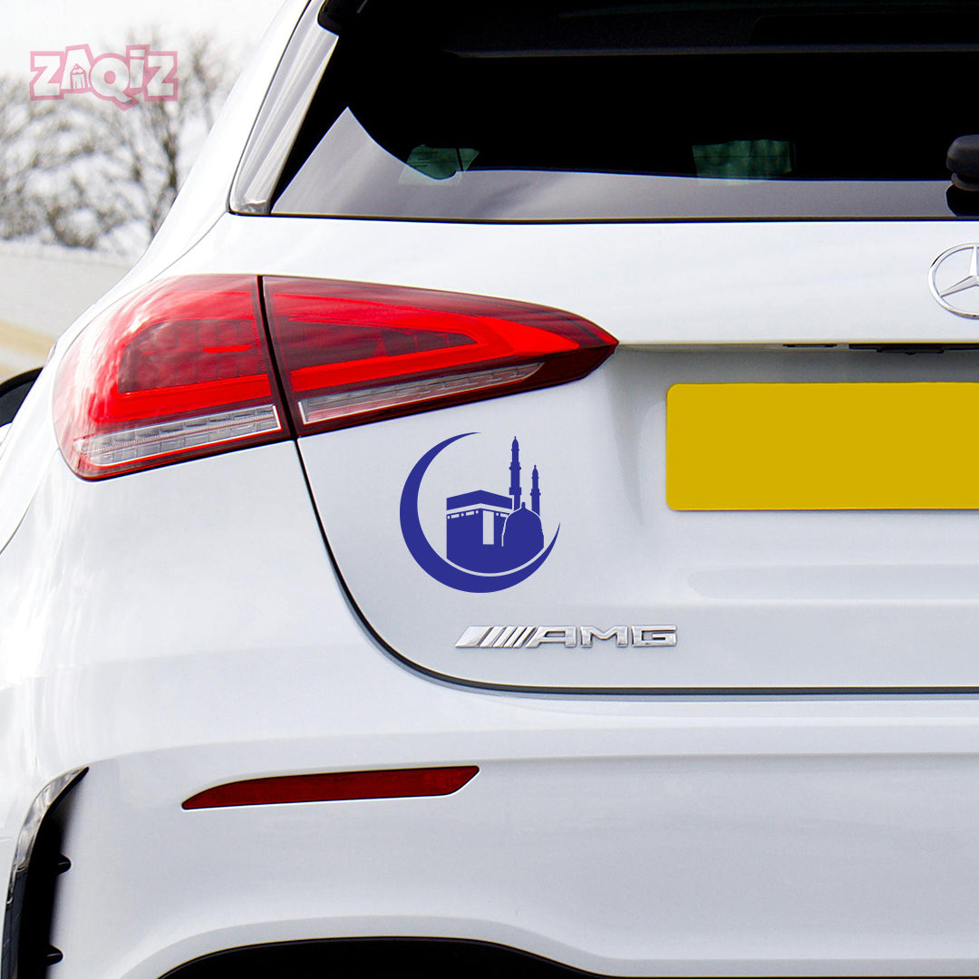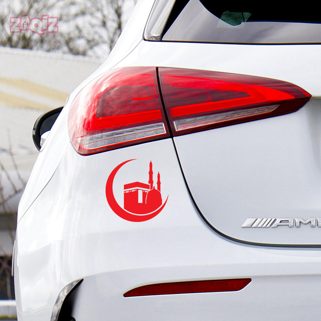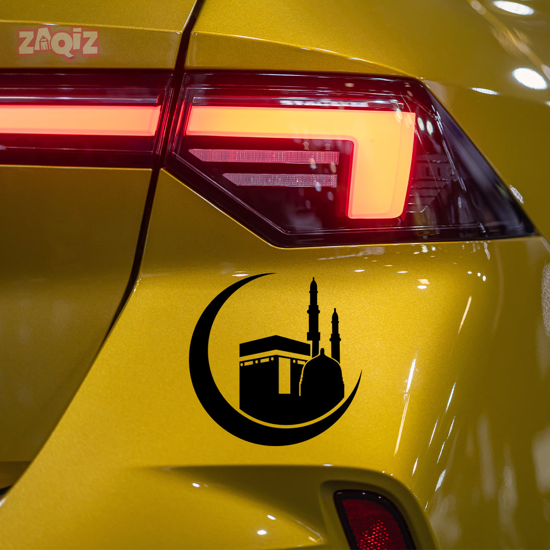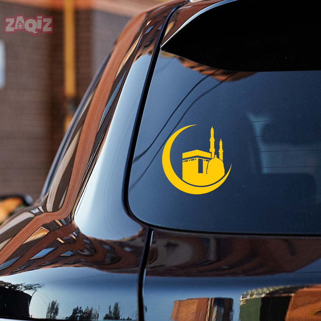 Kaaba Crescent Moon Car Sticker – Islamic Mecca & Mosque Vinyl Decal for Cars & Bikes | Waterproof Muslim Faith Sticker