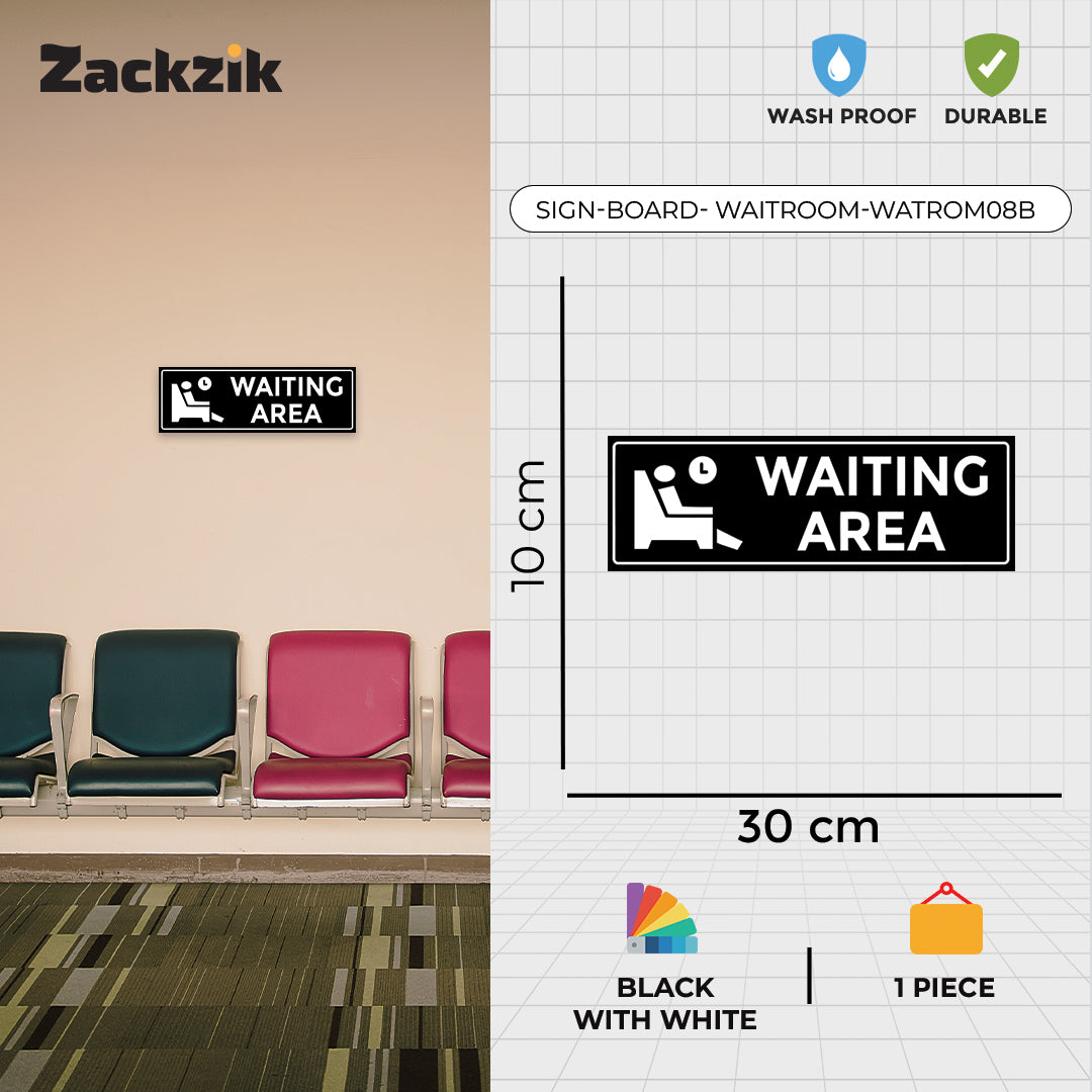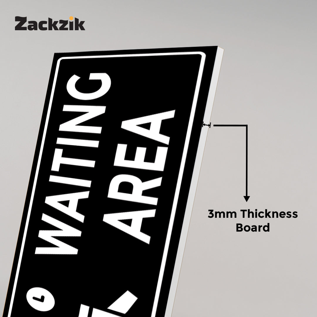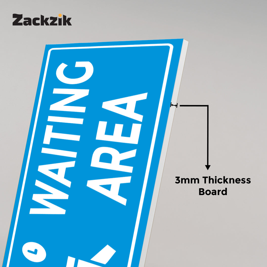 Help visitors navigate your space with this clear "Waiting Area" sign. Crafted from high-quality material, it is ideal for marking specific zones where guests or customers can wait comfortably.The visible text ensures quick recognition, reducing confusion and improving the visitor experience. Suitable for various indoor settings such as hotels, clinics, offices, and event venues, it offers easy installation and dependable performance.