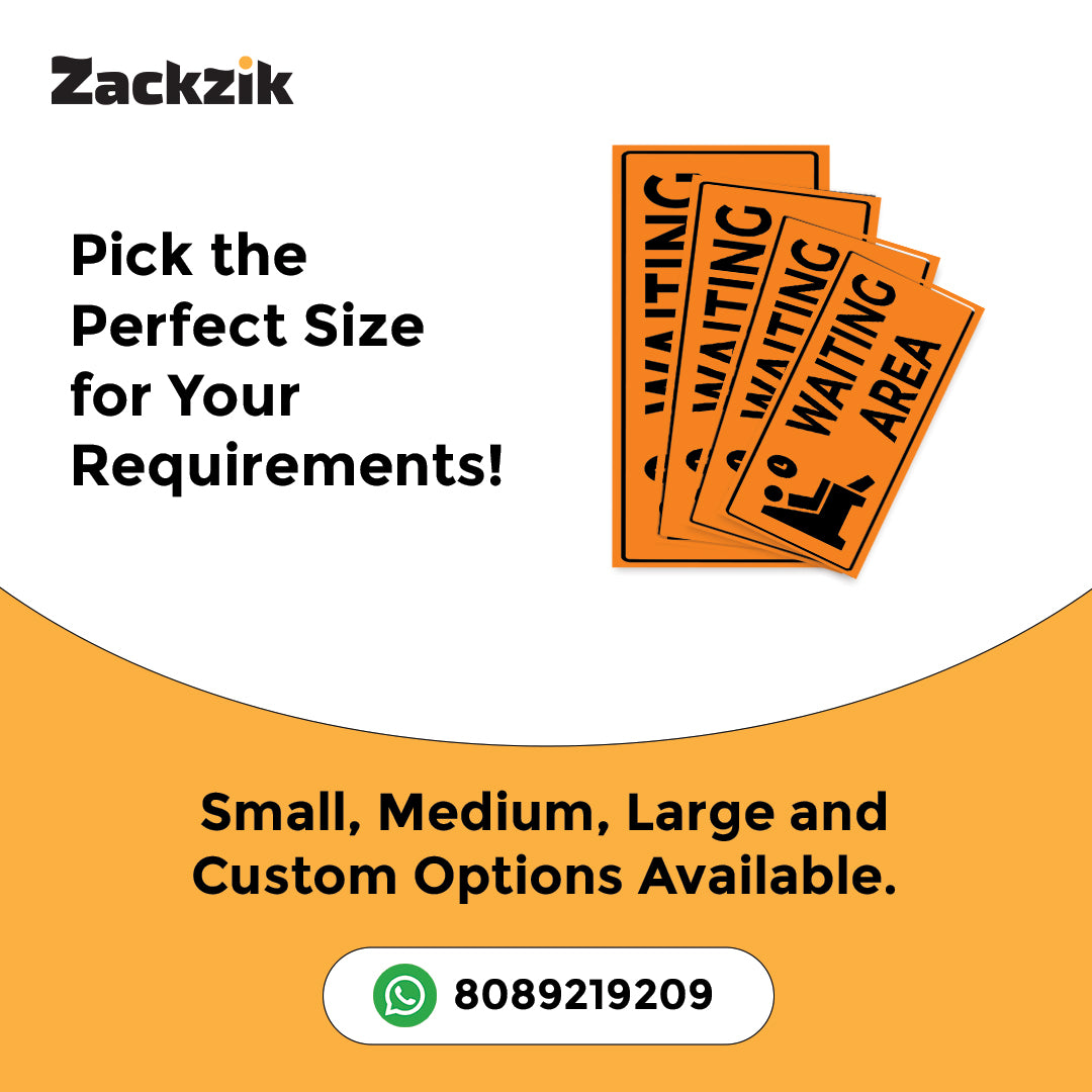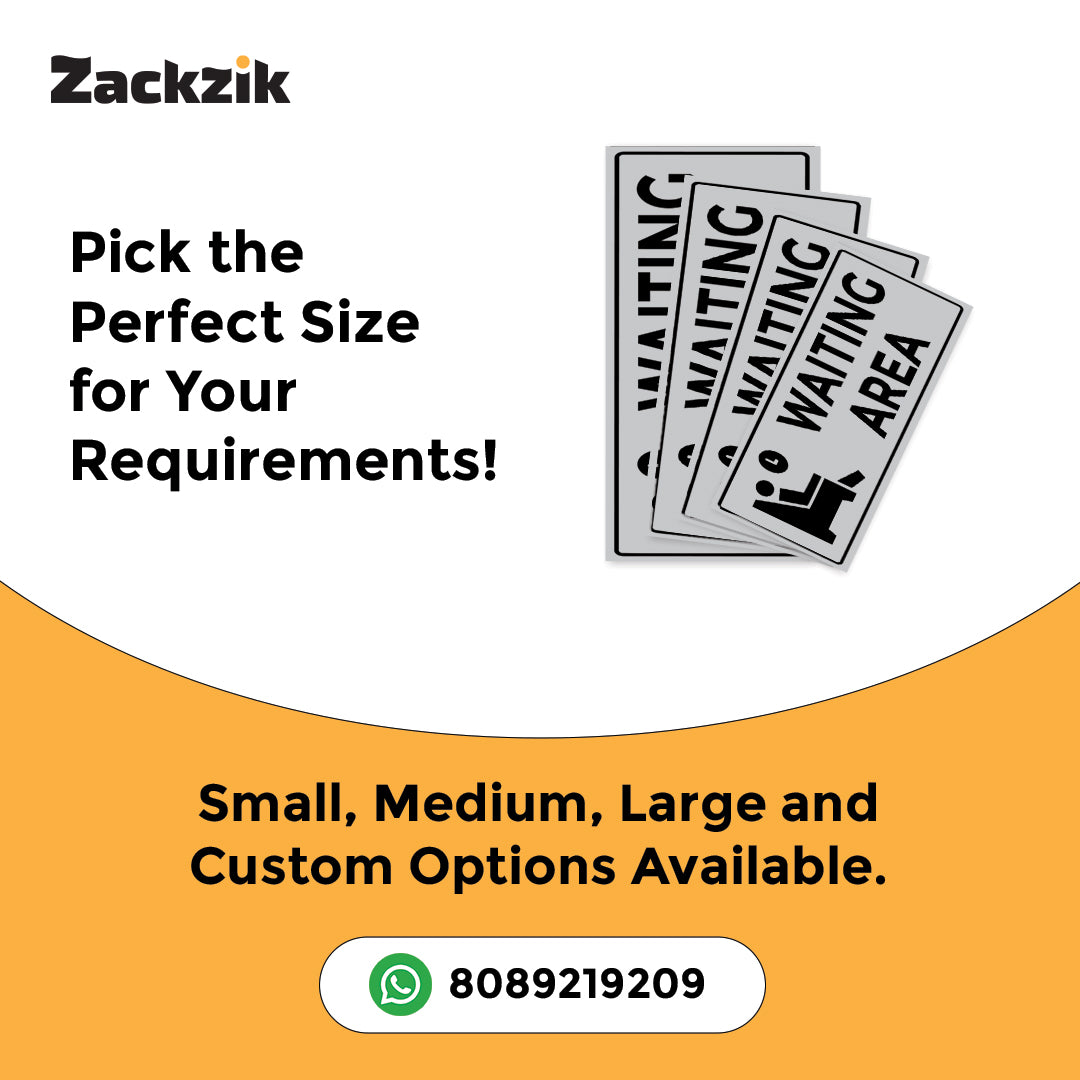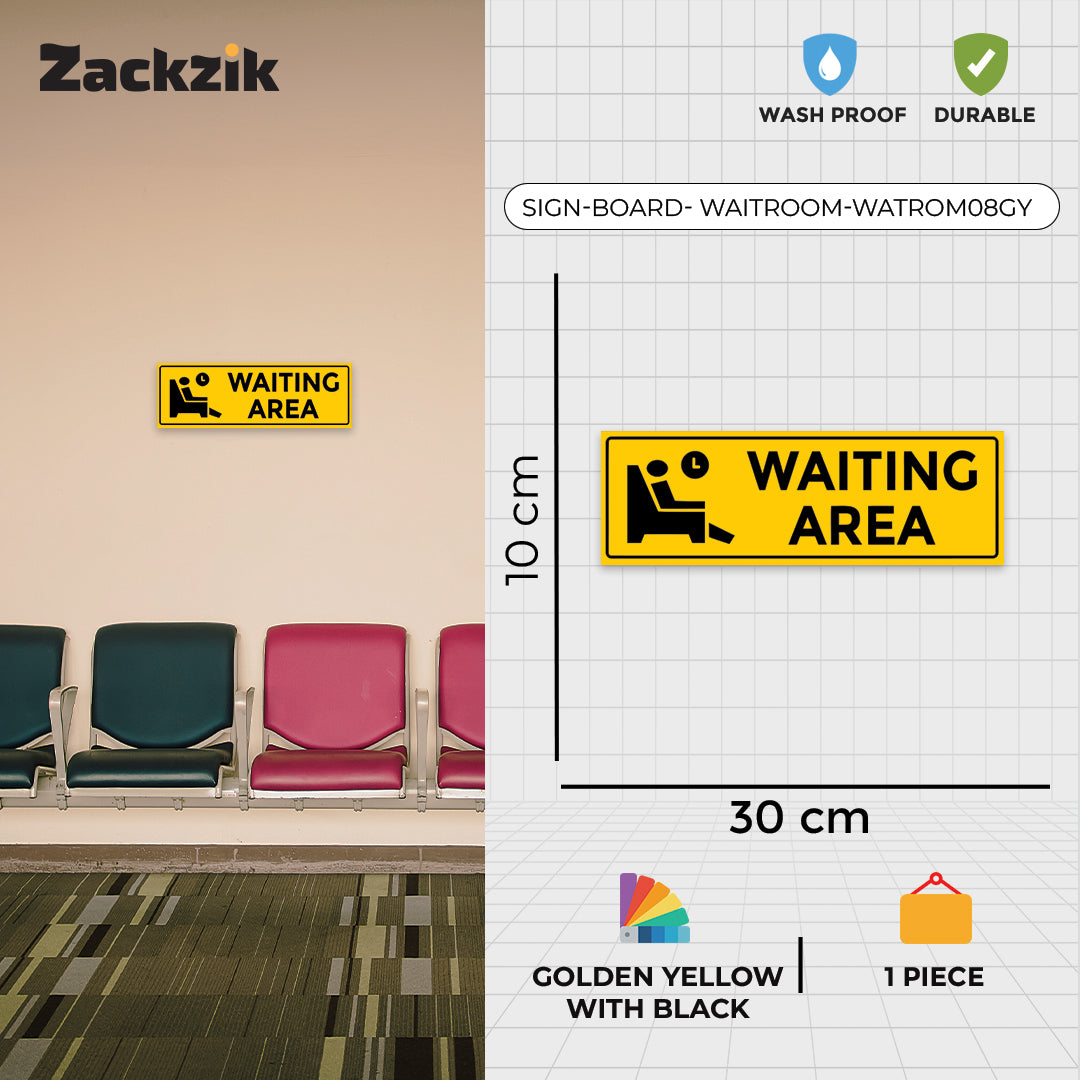 Help visitors navigate your space with this clear "Waiting Area" sign. Crafted from high-quality material, it is ideal for marking specific zones where guests or customers can wait comfortably.The visible text ensures quick recognition, reducing confusion and improving the visitor experience. Suitable for various indoor settings such as hotels, clinics, offices, and event venues, it offers easy installation and dependable performance.