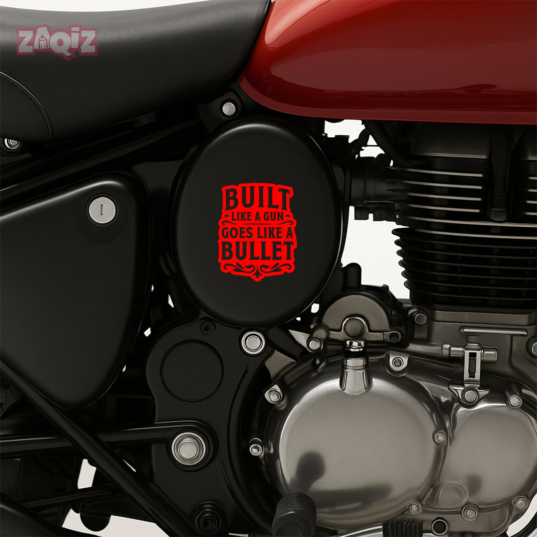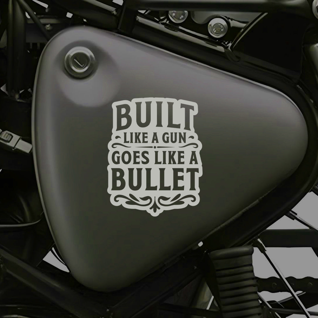 Built Like a Gun Goes Like a Bullet Round Star Sticker for Royal Enfield Bike