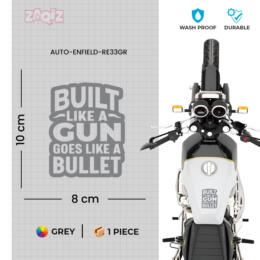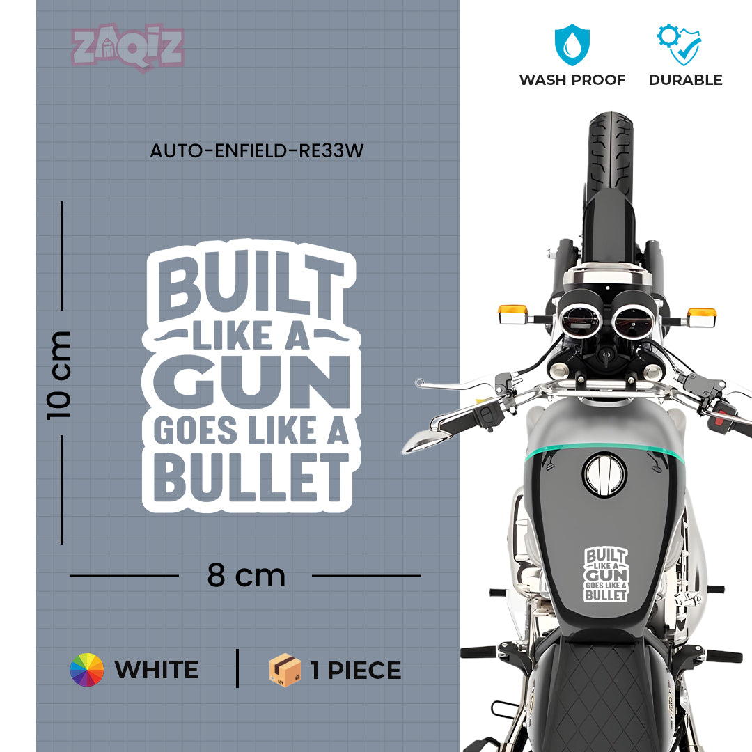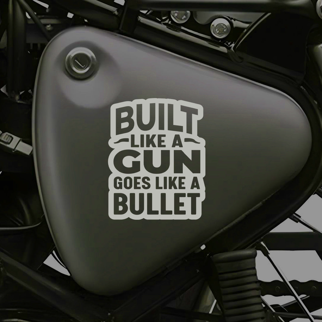 Built Like a Gun Goes Like a Bullet Sticker for Royal Enfield Classic Bikes