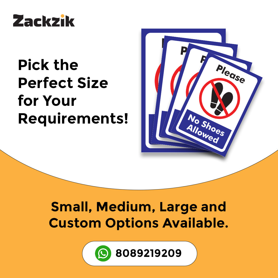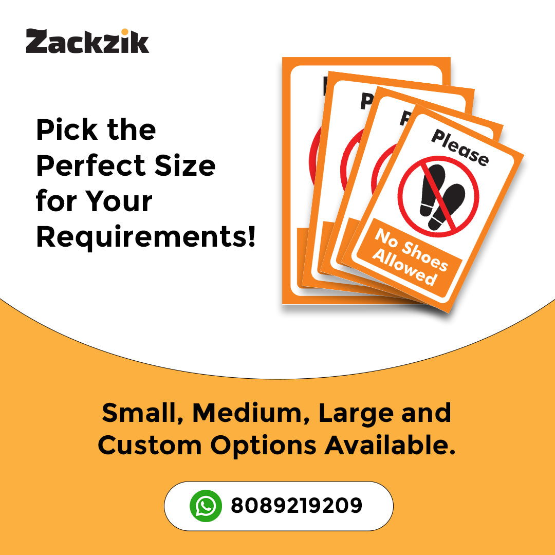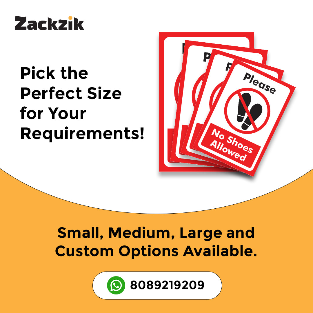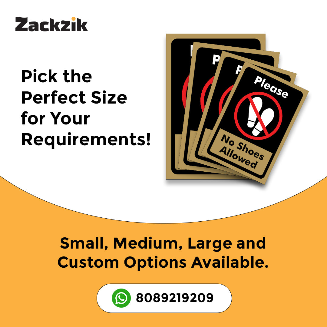 REMOVE YOUR SHOES signboard is a simple and effective way to remind visitors to take off their footwear before entering. Suitable for homes, offices, clinics, religious places, and clean zones, it helps maintain hygiene and cleanliness in indoor spaces. The sign is printed in bold, easy-to-read letters that grab attention instantly. Made from durable material, it is lightweight and easy to install on doors, walls, or entry points using double-sided adhesive tape or screws, depending on the surface. The clear instruction supports cultural, or hygiene practices and reduces the need for verbal reminders. Ideal for use in temples, hospitals, meditation centers, or any place where footwear is not allowed inside, this sign helps create a respectful and clean environment for everyone.