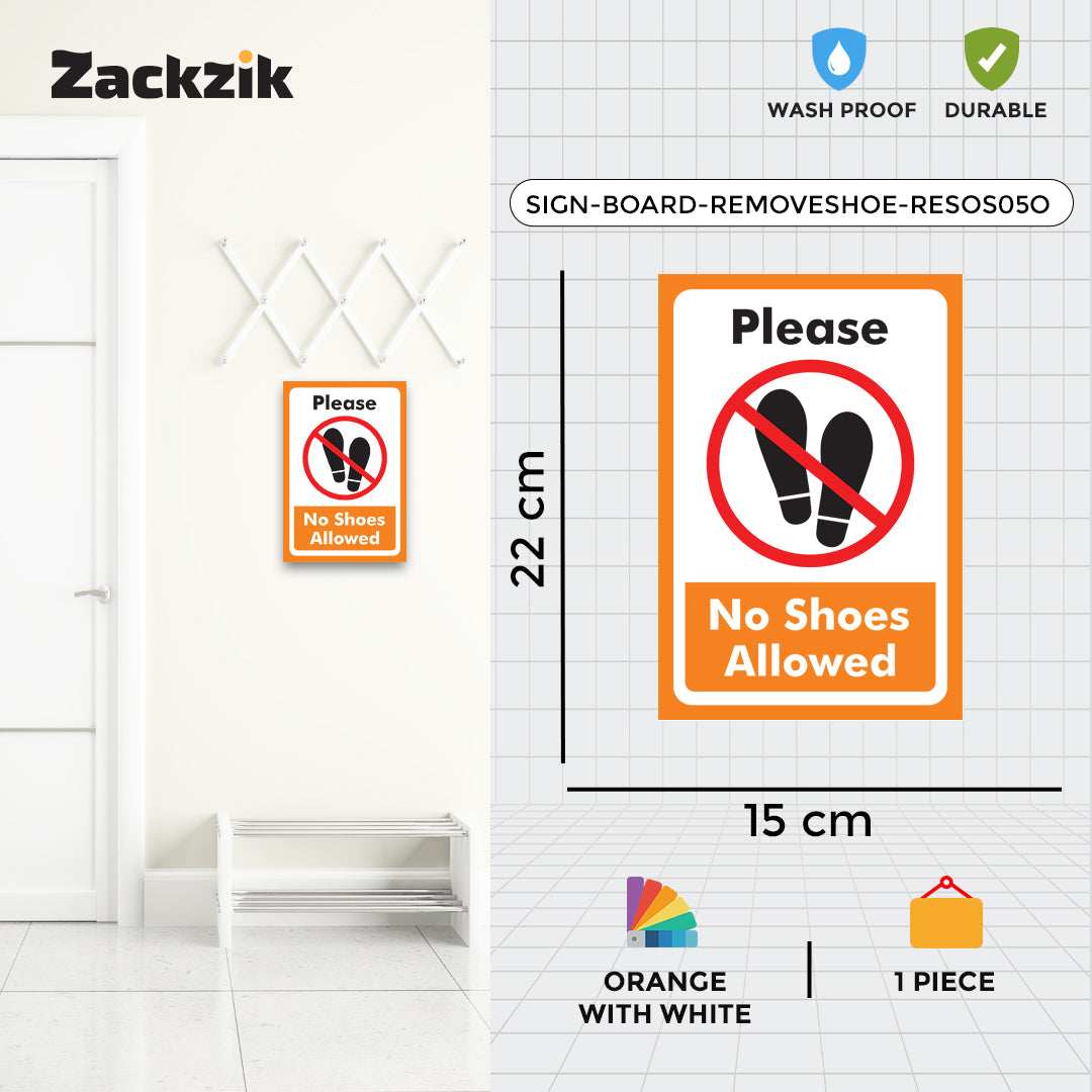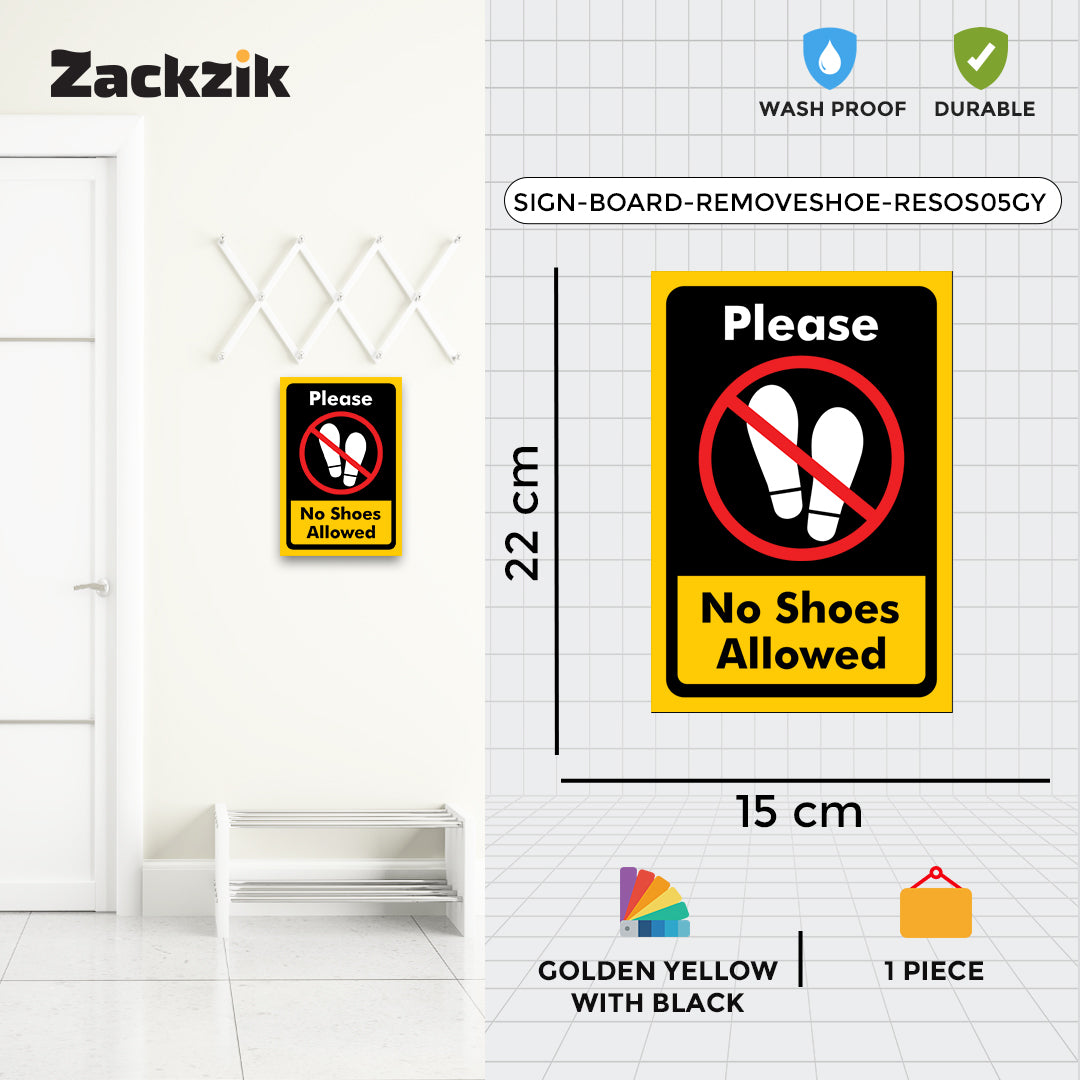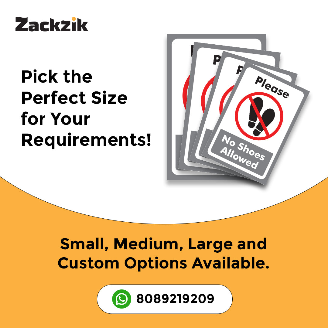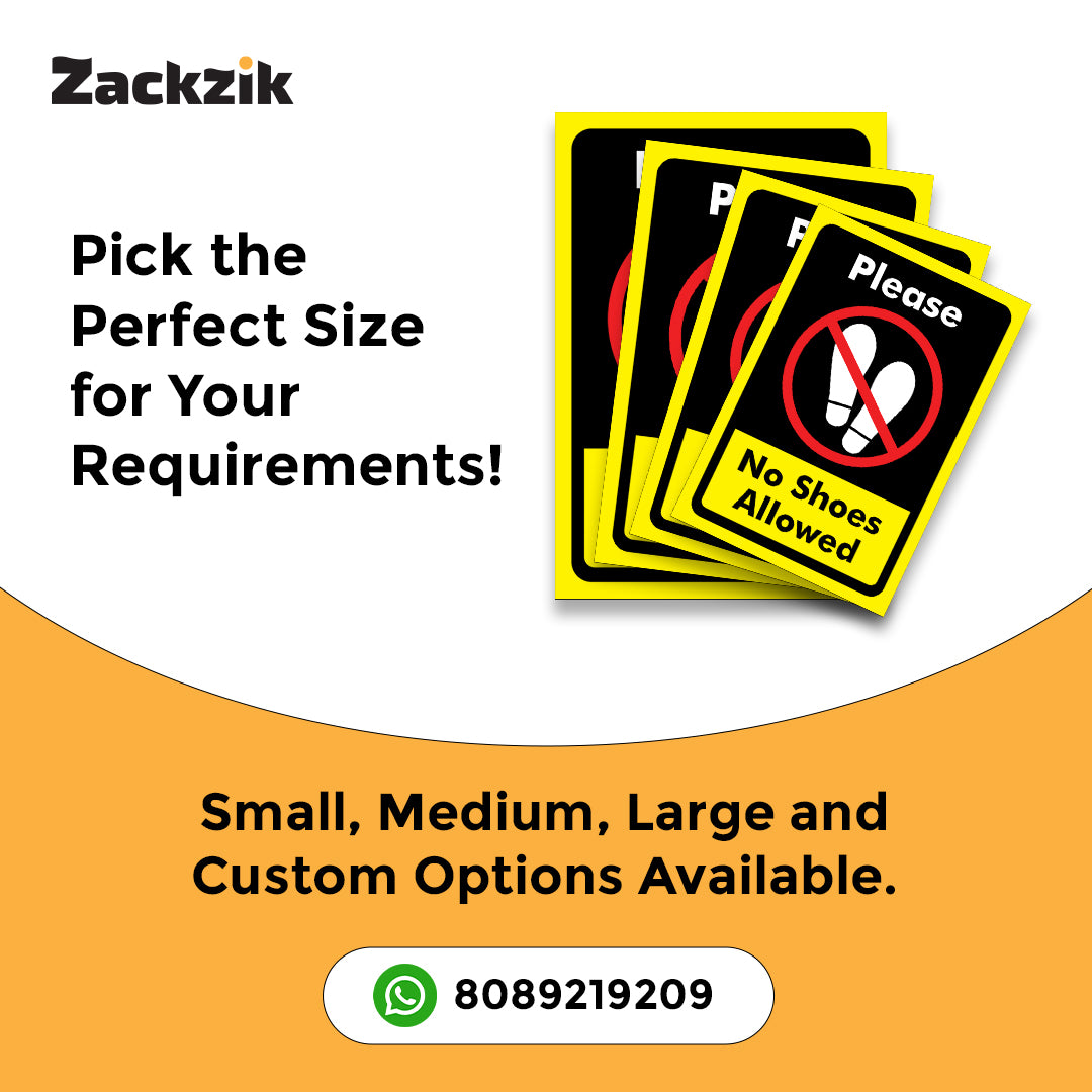 REMOVE YOUR SHOES signboard is a simple and effective way to remind visitors to take off their footwear before entering. Suitable for homes, offices, clinics, religious places, and clean zones, it helps maintain hygiene and cleanliness in indoor spaces. The sign is printed in bold, easy-to-read letters that grab attention instantly. Made from durable material, it is lightweight and easy to install on doors, walls, or entry points using double-sided adhesive tape or screws, depending on the surface. The clear instruction supports cultural, or hygiene practices and reduces the need for verbal reminders. Ideal for use in temples, hospitals, meditation centers, or any place where footwear is not allowed inside, this sign helps create a respectful and clean environment for everyone.