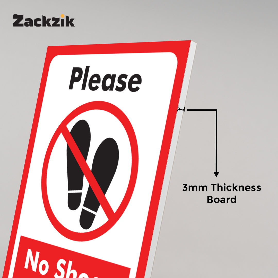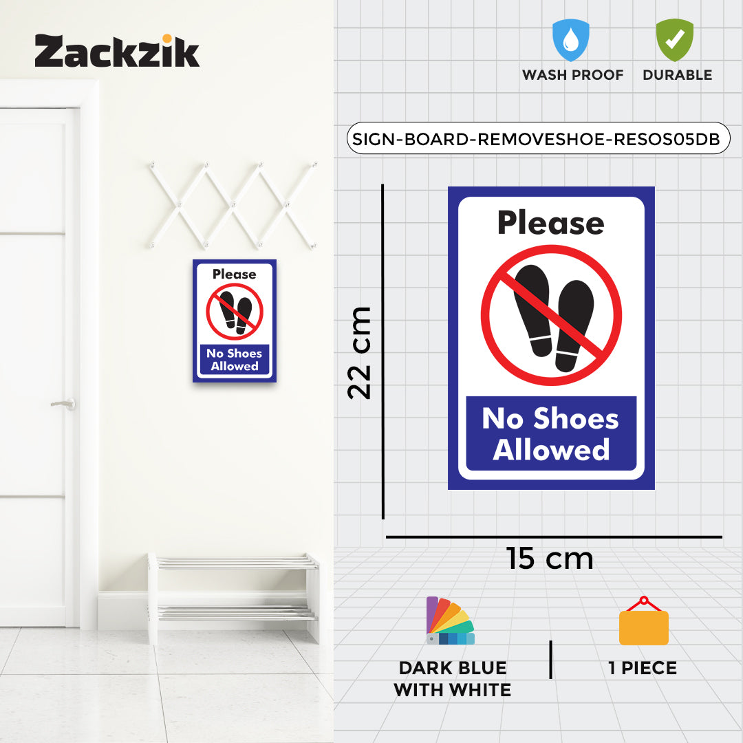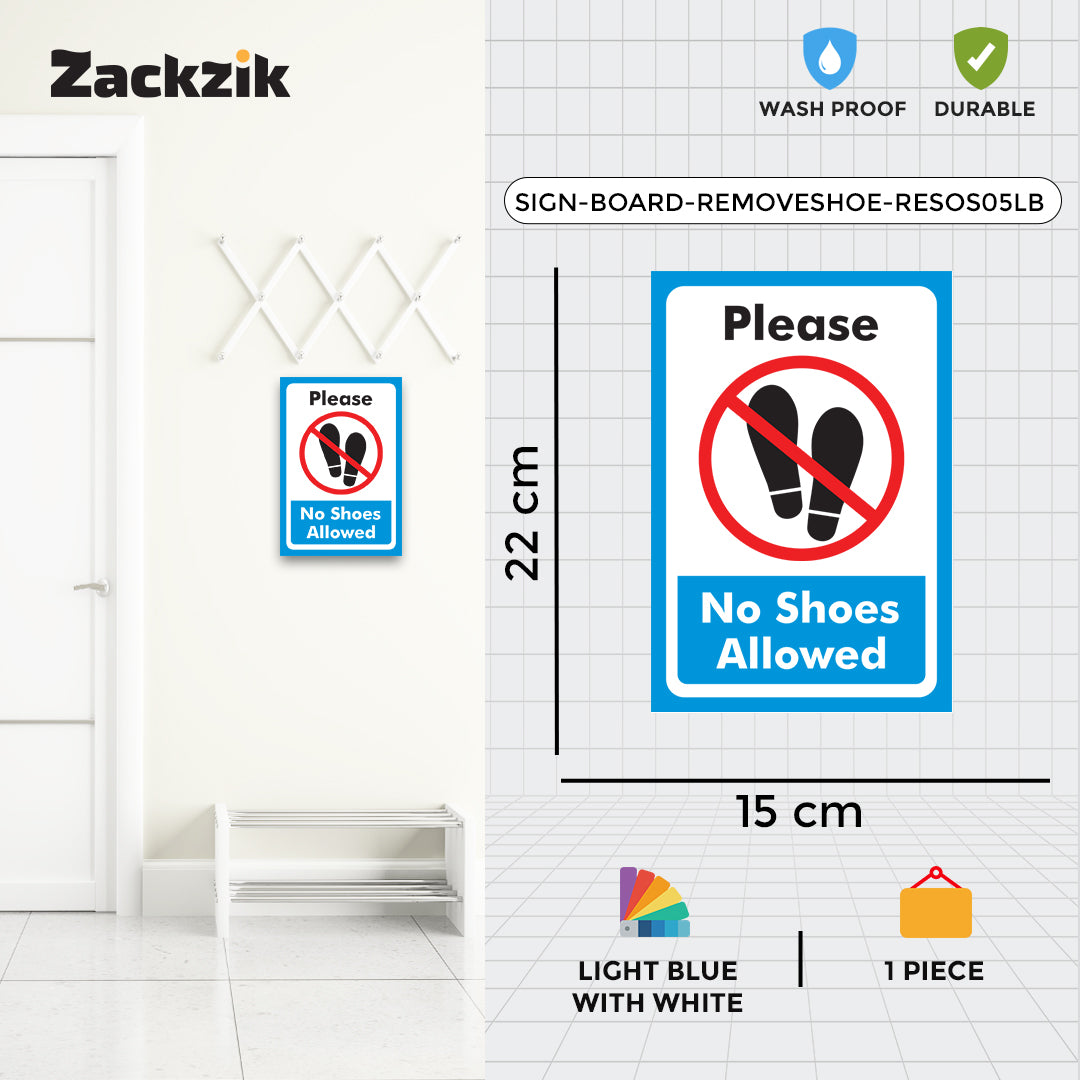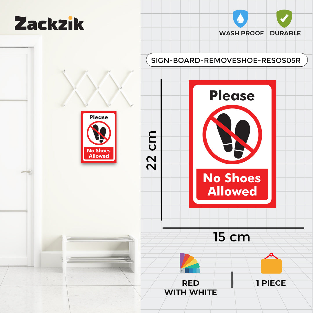 REMOVE YOUR SHOES signboard is a simple and effective way to remind visitors to take off their footwear before entering. Suitable for homes, offices, clinics, religious places, and clean zones, it helps maintain hygiene and cleanliness in indoor spaces. The sign is printed in bold, easy-to-read letters that grab attention instantly. Made from durable material, it is lightweight and easy to install on doors, walls, or entry points using double-sided adhesive tape or screws, depending on the surface. The clear instruction supports cultural, or hygiene practices and reduces the need for verbal reminders. Ideal for use in temples, hospitals, meditation centers, or any place where footwear is not allowed inside, this sign helps create a respectful and clean environment for everyone.