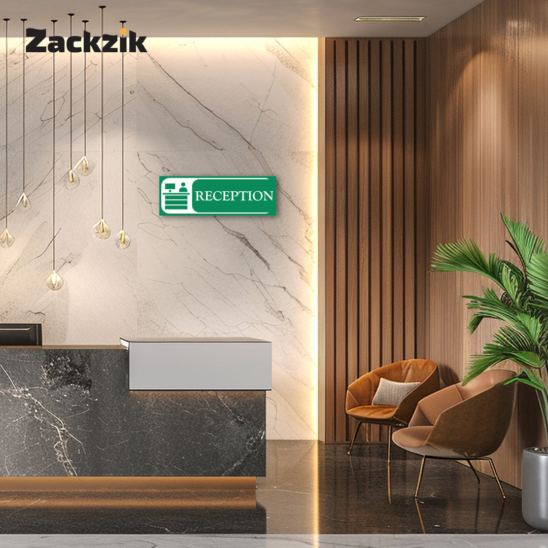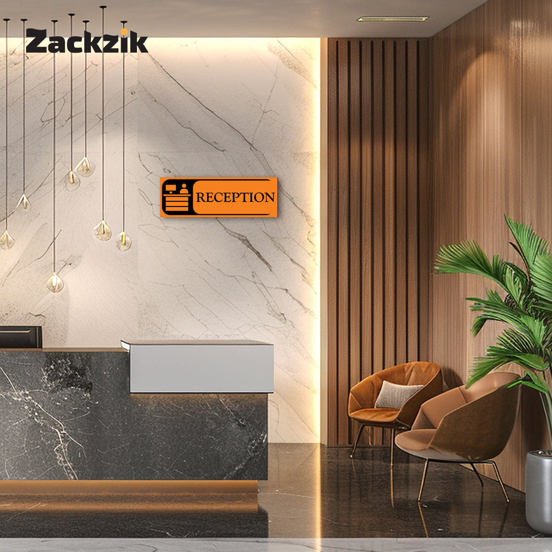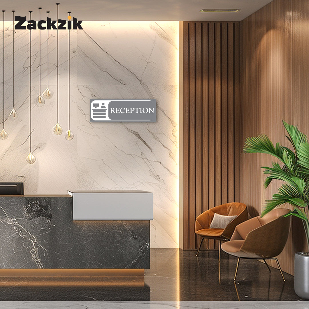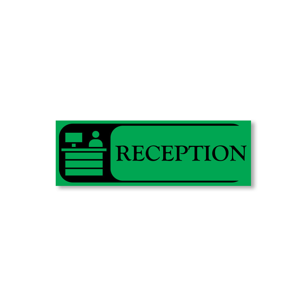 Bold Design: Clear purple-and-white reception graphic with bold text for easy identification
