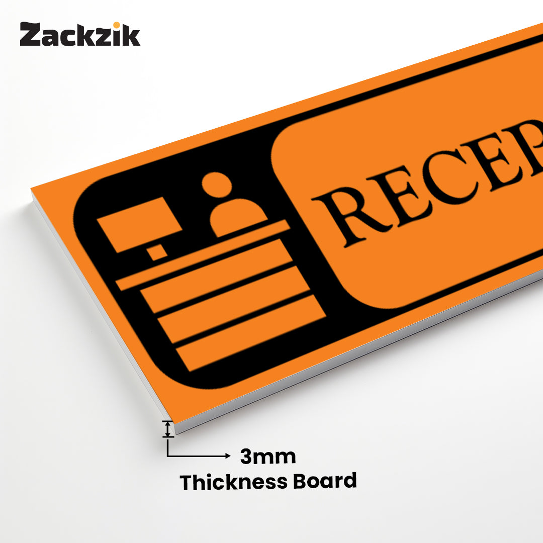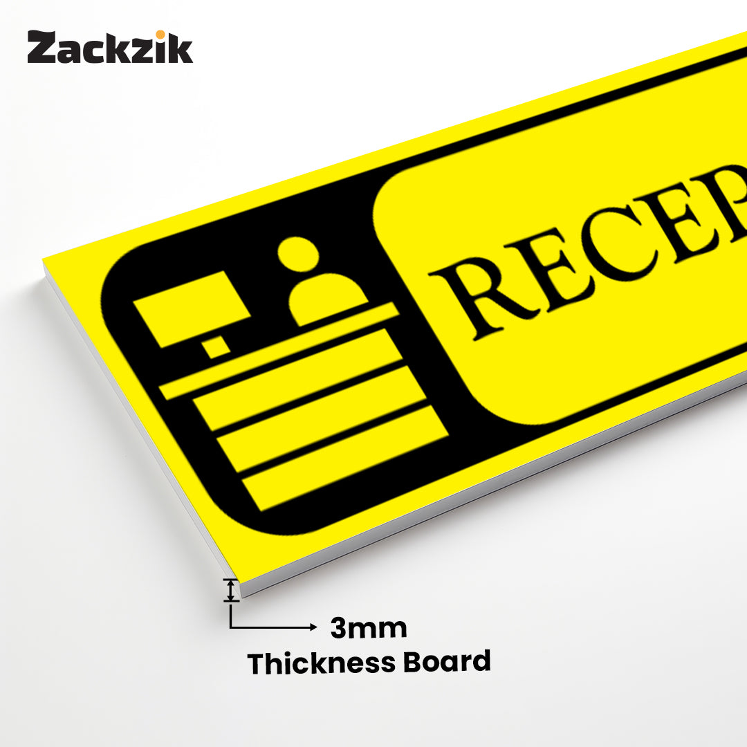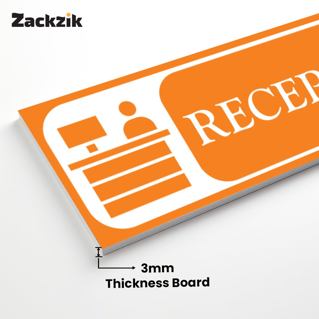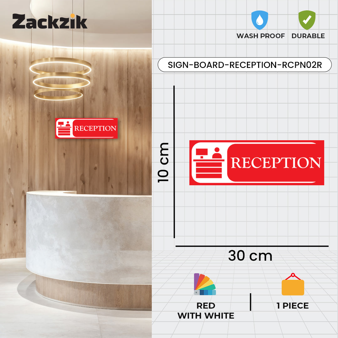 Bold Design: Clear purple-and-white reception graphic with bold text for easy identification