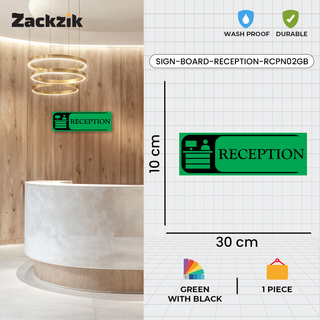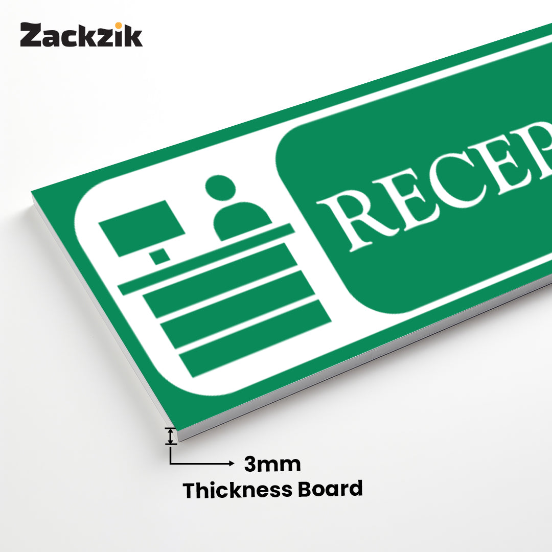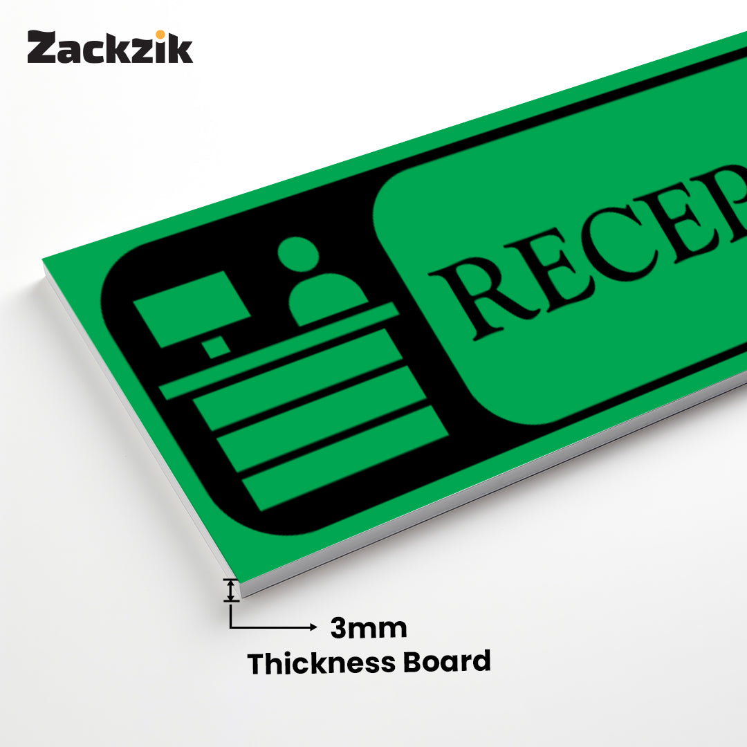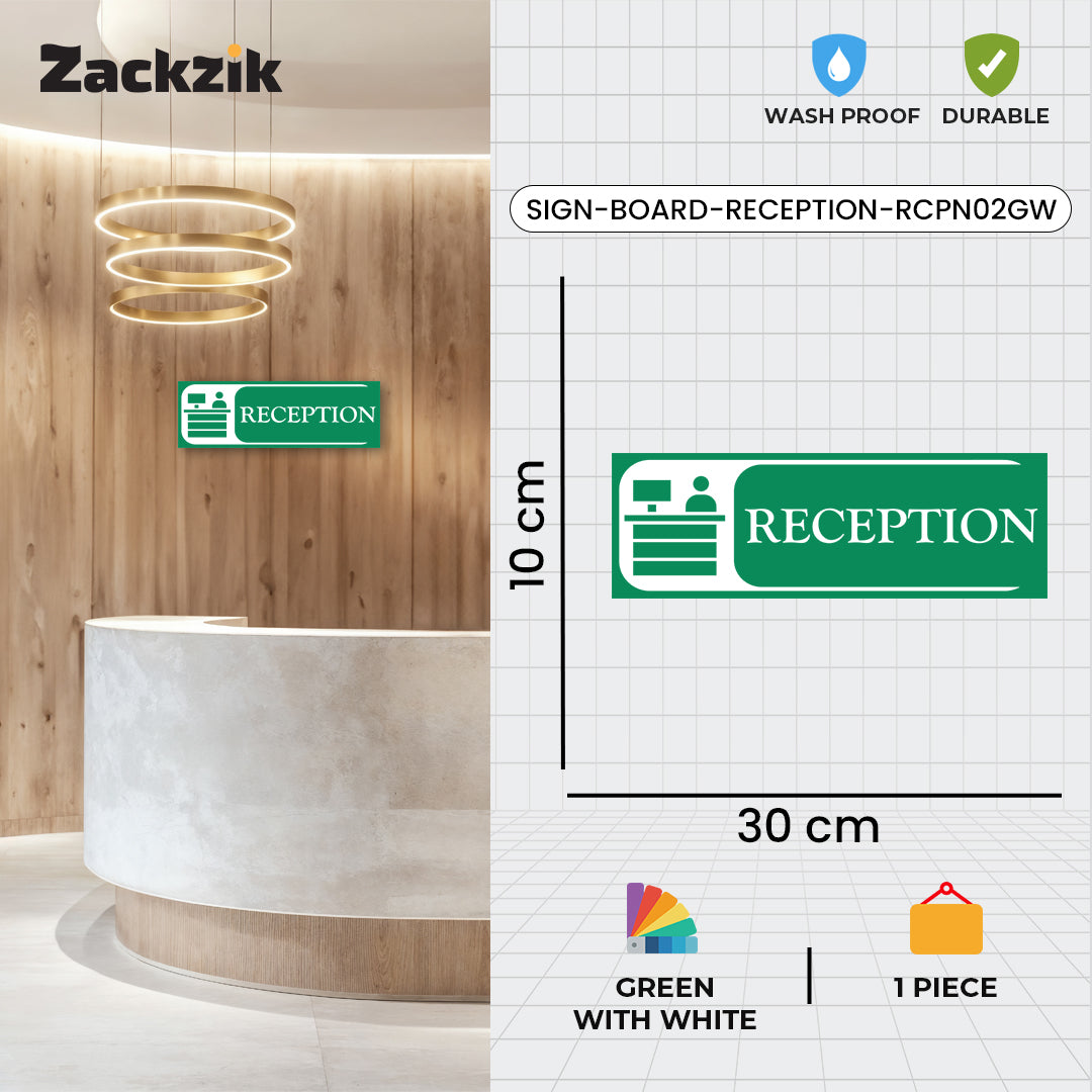 Bold Design: Clear purple-and-white reception graphic with bold text for easy identification